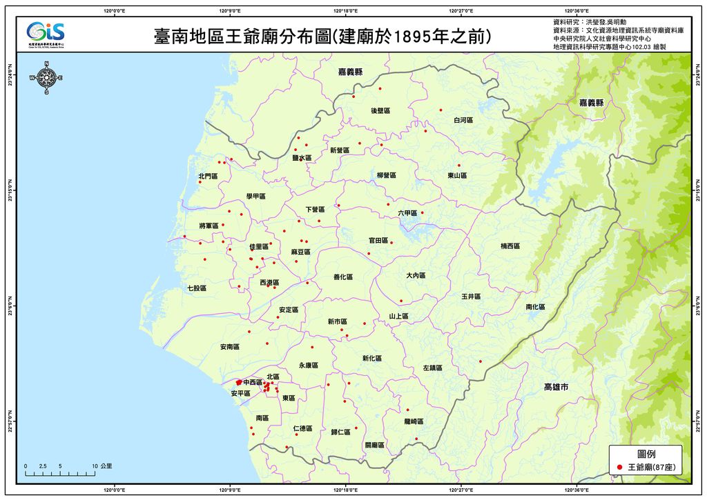 臺南地區王爺廟分布圖(建廟於1895年之前) https://crgis.rchss.sinica.edu.tw/spatial/atlas/temple/god/007-4/view https://crgis.rchss.sinica.edu.tw/logo.png 臺南地區王爺廟分布圖(建廟於1895年之前) 點選以顯示原大小圖片… 大小:: 140KB