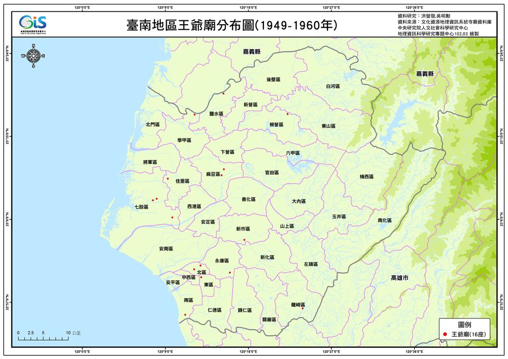 臺南地區王爺廟分布圖(建廟於1949~1960年) https://crgis.rchss.sinica.edu.tw/spatial/atlas/temple/god/007-8/view https://crgis.rchss.sinica.edu.tw/logo.png 臺南地區王爺廟分布圖(建廟於1949~1960年) 點選以顯示原大小圖片… 大小:: 136KB